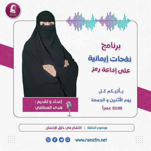 هذا ما سنتحدث عنه في حلقتنا من برنامج #نفحات_إيمانية ، يأتيكم طوال شهر رمضان المبارك ، شاركونا تعليقاتكم وآرائكم مع هدى العطافي يوم الأثنين و الجمعة الساعة 03:00 عصراً ، عبر إذاعة رمز 🎙️