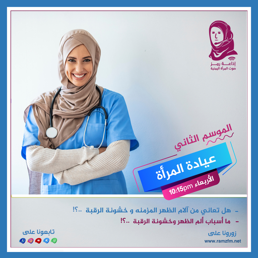نتابع 📻 حلقة جديدة من برنامج #عيادة_المرأة في #الموسم_الثاني .. عبر إذاعة رمز الإلكترونية .. 🎙️