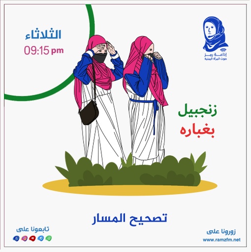 برنامج #زنجبيل_بغباره برنامج إسبوعي إجتماعي يناقش القضايا الخاصة بالنساء بأسلوب كوميدي و باللهجة العامية الصنعانية .. عبر إذاعة رمز الإلكترونية .. 🎙️